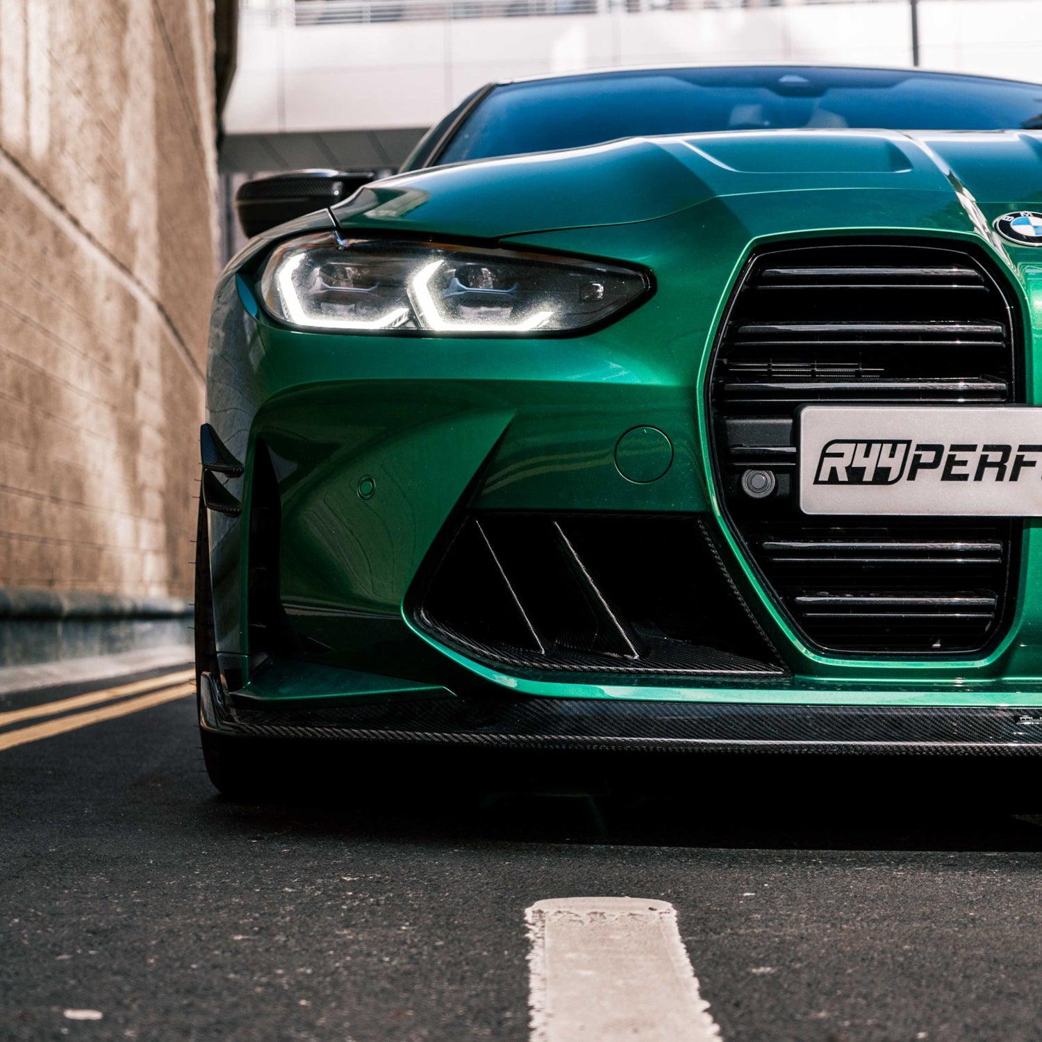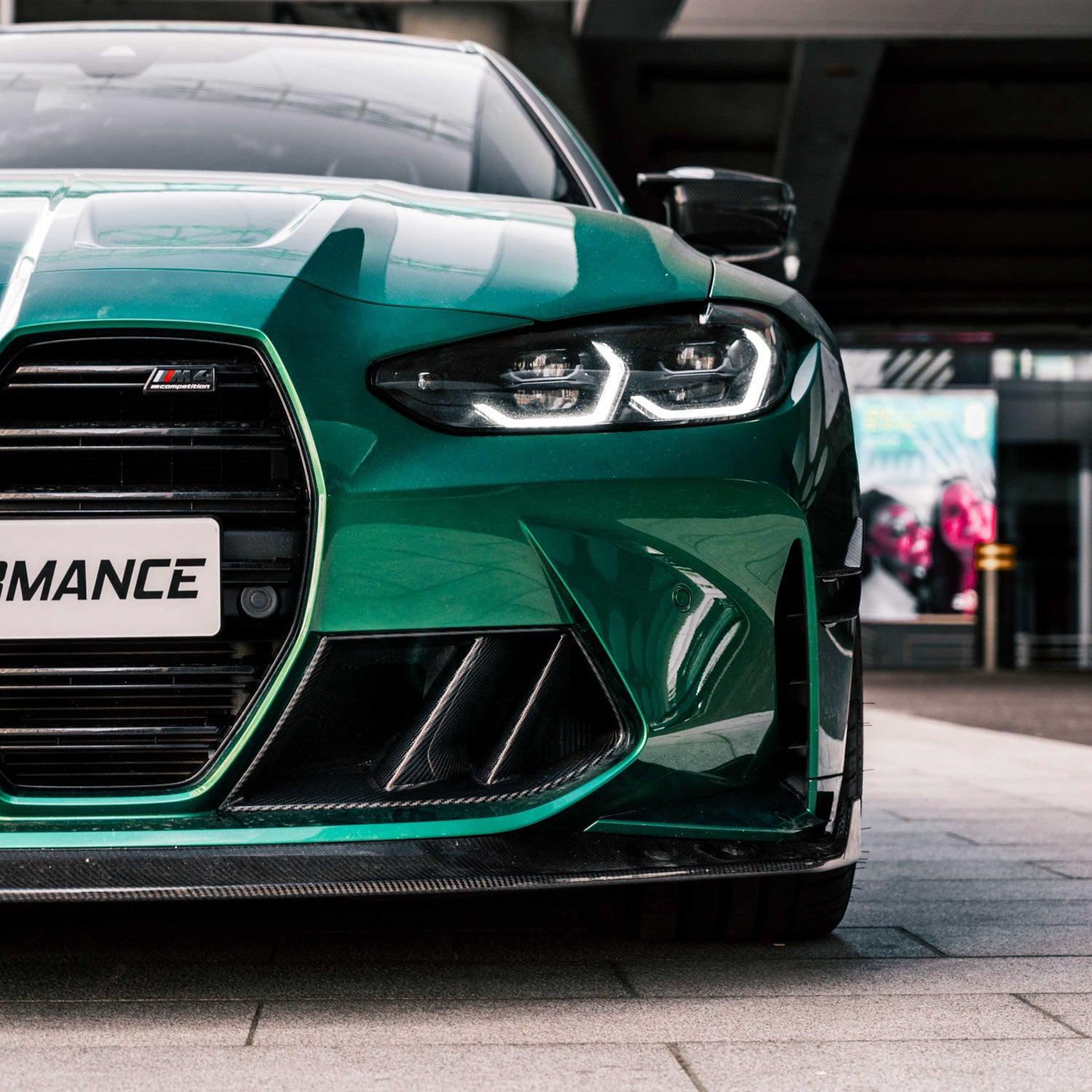 MHC+ Carbon Fibre Twin Fin Front Ducts for the BMW G80 G81 M3 & G82 G83 M4 were designed to transform the vehicle's front end, especially when combined with the MHC+ SP1 Front Splitter In Pre Preg Carbon Fibre.
