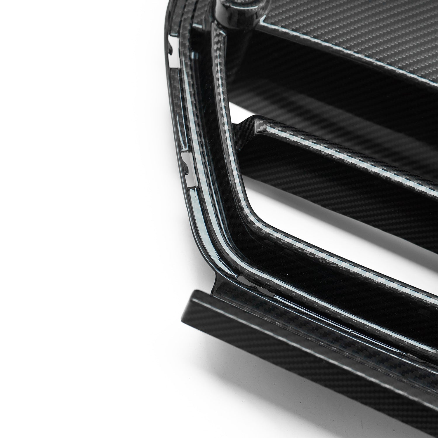 Unlike normal carbon fibre, pre-preg carbon is reinforced for increased strength and durability. It can also be an astonishing 70% lighter than other carbon options, ideal for weight-saving. Quality-wise, pre-preg carbon is far more consistent meaning the chance of imperfections is dramatically reduced. The manufacturing process eliminates undesirable air bubbles and results in a perfect, sleek, smooth & high gloss finish, making the ultimate part to complement your vehicle. The finish on these grilles is nothing short of immaculate.