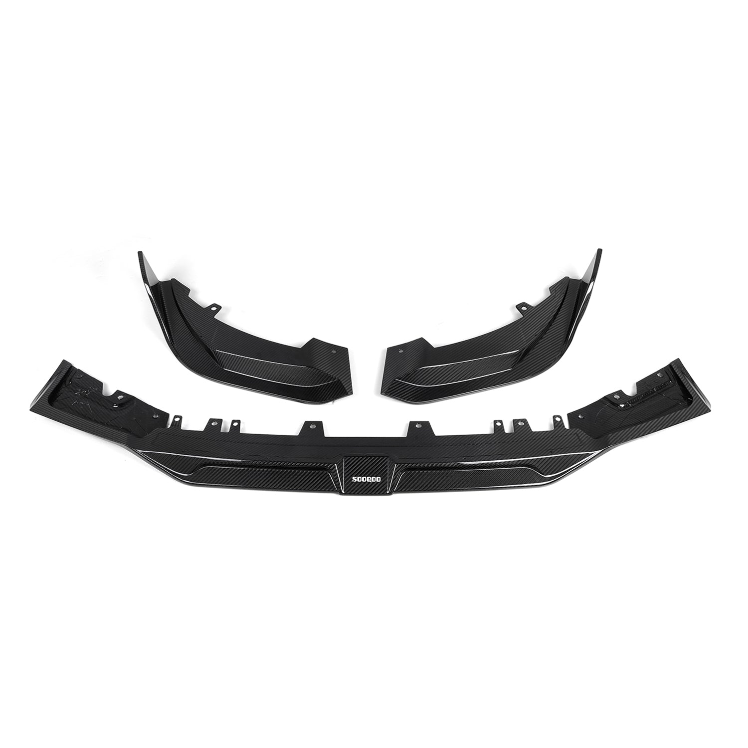The gloss pre-preg carbon fibre BMW F97 X3M and F98 X4M LCI front lip from SooQoo makes the facelift BMW X3M look very imposing and aggressive whilst maintaining a premium OEM+ style. At R44 Performance, we're big fans of the LCI BMW X3M / 98 X4M's looks and this front splitter takes it to the next level! The angular design matches the LCI's updated front bumper perfectly and the 3-piece construction makes installation at home much easier - not to mention the reduced shipping costs that allow the SooQoo front lip to be even better value!